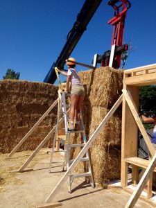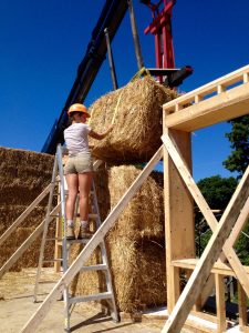 Fifth Wind Farms wanted to create a building that could reach the energy efficiency requirements of the Passive House standard without resorting to the use of foam, mineral wool or other materials with a high carbon footprint. While straw bale buildings can have excellent energy performance, typical straw bale construction does not meet the Passive House standard without the addition of an extra layer of insulation (see our “Straw-Cell” project for a different take on this idea).
