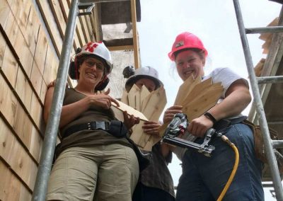 Our Natural Building Intensive students put in a great deal of time and effort to complete projects for our clients, and we are respectful of this fact. We prioritize projects that serve a community function and provide exceptional educational experiences for our participants. Our ideal client is a not-for-profit organization needing a building that serves the public interest. When we build for private clients, the resulting building serves a local need like affordable housing or densification. All our projects are selected for the educational opportunities they offer for our participants.