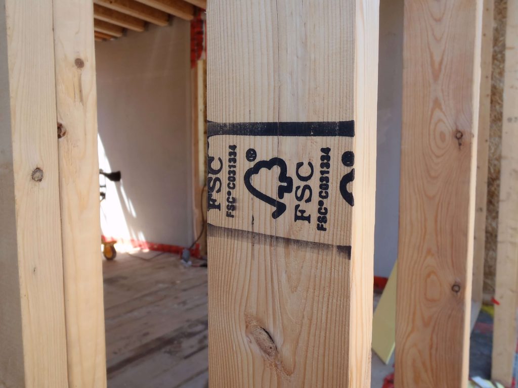Our second delivery of FSC certified wood was actually harvested from an FSC certified forest, milled at an FSC certified mill and handled by an FSC certified distributor. All good, except the wood had no markings on it whatsoever that would indicate that it is FSC certified! After our first experience, we were nervous to accept that these 2x4s that had no markings that aren’t on any other 2×4 were FSC certified. But it turns out that sometimes the lumber isn’t stamped with an FSC stamp.