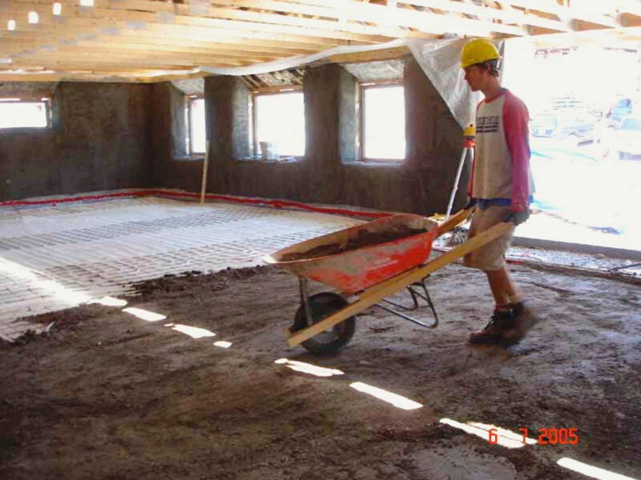 Earthen floor slab with hydronic in-floor heating
