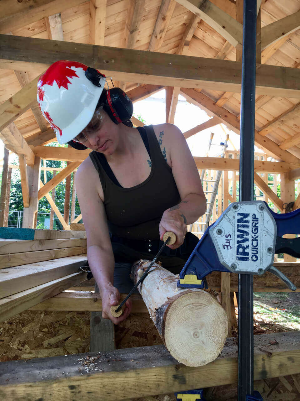 Sheds framed with round poles from local forest thinning project