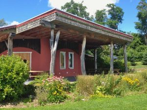 Peterborough GreenUP runs the Ecology Park, a five acre showcase of sustainable landscape ideas and resources. When they needed a programming hub to provide shelter and storage in the park, they applied all their landscape ideals to the buildings including the use of round pole framing, hempcrete, cordwood, multiple straw wall systems, natural plasters and timber framing…