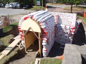 In 2012, Endeavour helped to build a subterranean earthbag root cellar for the The Seasoned Spoon Cafe at Trent University. It was a fascinating project for which we could find very little in the way of research or documentation on which to base our design and systems. Now, after operating for three winters, this root cellar has been the focus of a research project by Martine Cleary through the Trent Community Research Centre.