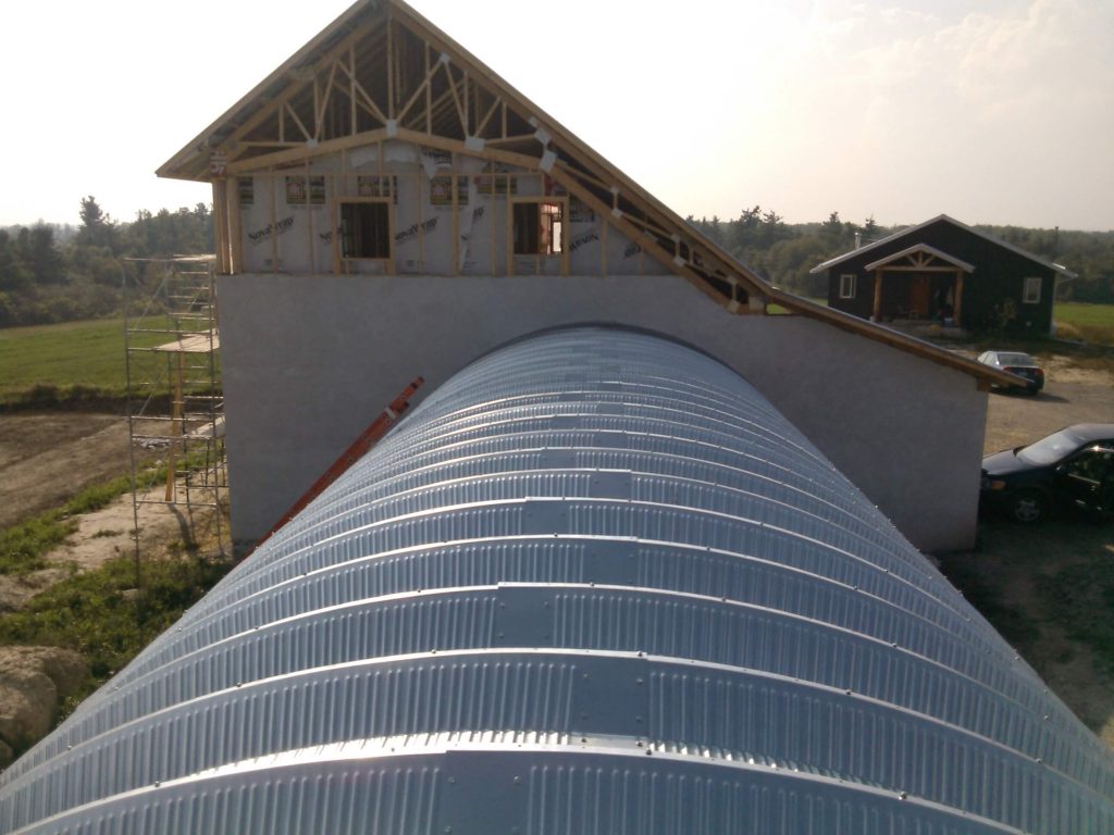 At the Circle Organic Farm root cellar, we had concerns that the exposed end of the buried quonset hut that forms the cellar would make the cellar too cold in the winter. But from Martine’s report, it looks like that cellar stays much closer to the optimum temperature because of the influence of low outdoor temperatures.