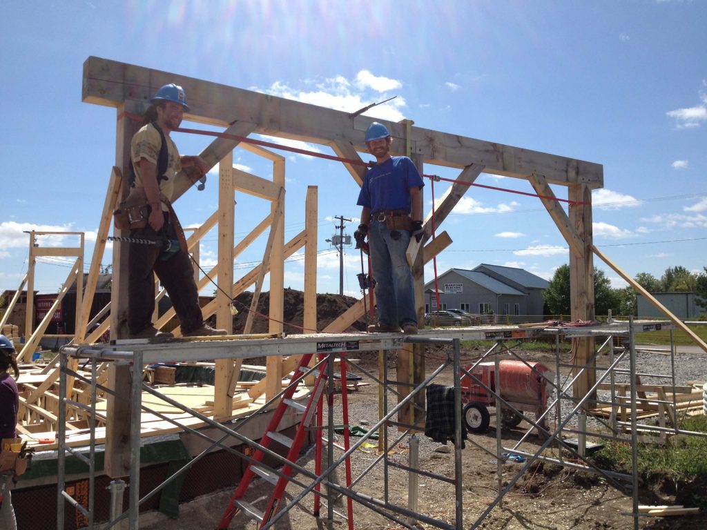 Timber framing is an important building system for any sustainable builders’ palette of options, and we always try to include a timber framing element in our projects so our students can gain some exposure and experience in this time-honoured way of building.