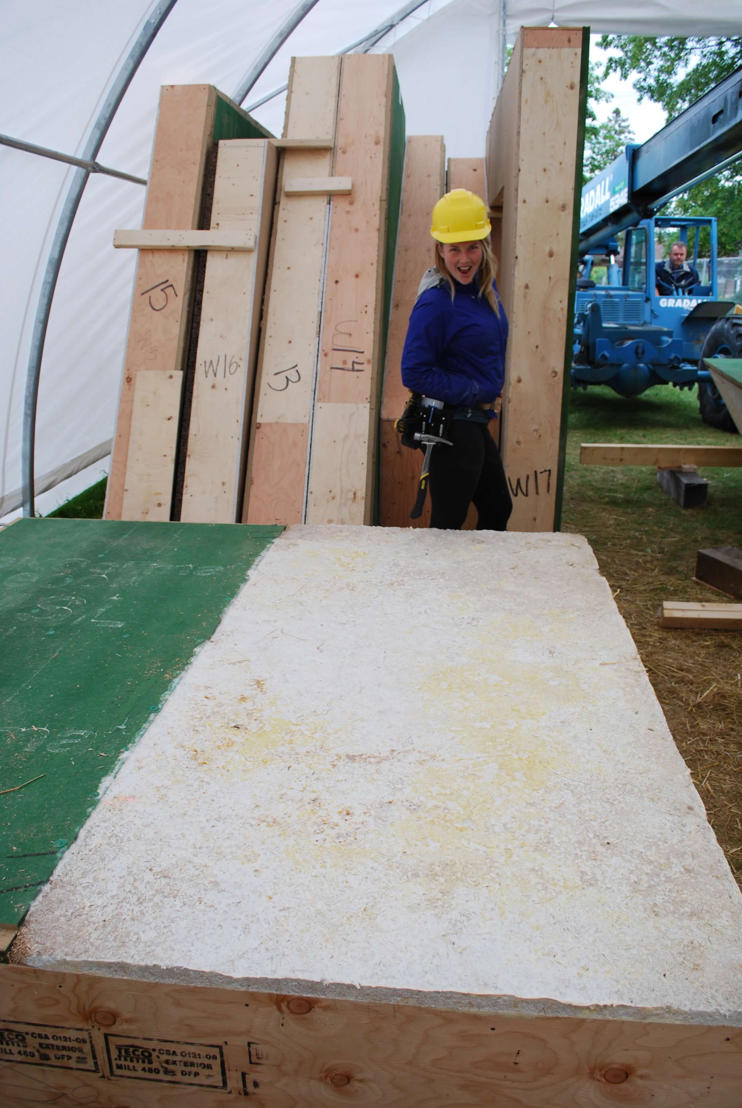 Mycofoam insulation on a straw bale wall panel